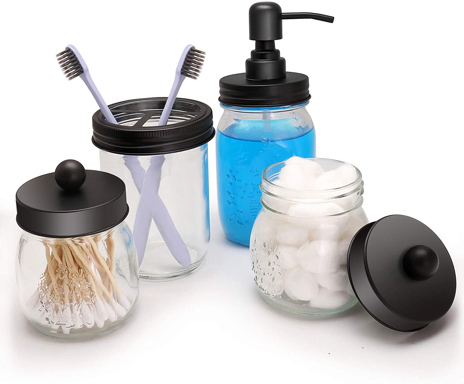 The lids have a vintage rusty finish. Buy top selling products like ball® elite 32 oz. 4 piece farmhouse mason jar bathroom accessories set, soap disopenser / toothbrush holder / 2 pack cotton swab holders. When you're deciding on lights for your home, you need options. July 25, 2021 by shahab uddin shorowarthy. This diy mason jar storage system is all you need to keep your bathroom organized, and it is perfect for adding a little farmhouse style, too. You will need a cricut maker or cricut joy with a fine point blade for this mason jar bathroom storage diy. With your set you get 1 pint Our coordinating mason jar light fixtures come in ceiling fan kits, vanity lights and even track lighting. Farmhouse bathroom mason jar set decor; The set pictured is done in vintage chalk paint. This hand painted set has been sealed with a clear coat for easy cleaning. This step was actually pretty quick, and easier than you might think.