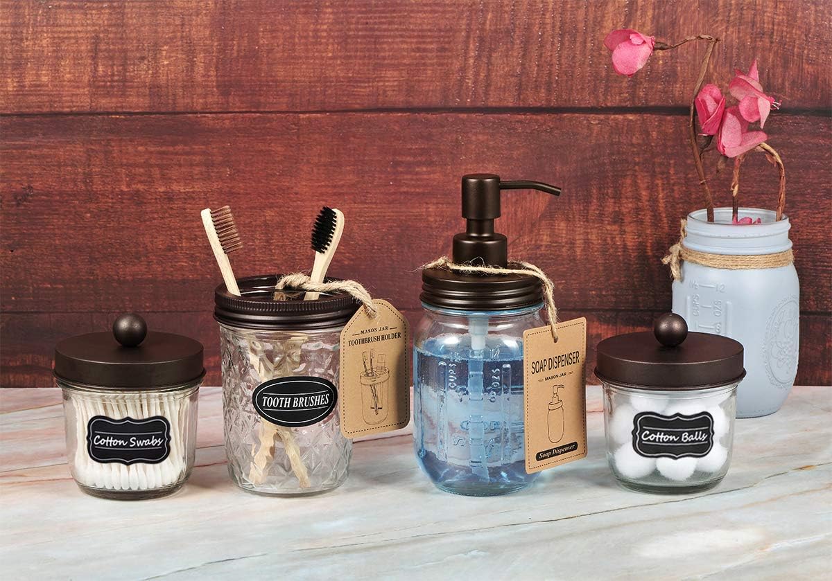 5 out of 5 stars 47 au 8783. Installing mason jars on the light fixture. To begin you wipe your mason jars down with alcohol and then paint the jars with. Comes with exclusive designed waterproof stickers, they are perfect with rustic ambiance. Mason jar business card holders, mason jar desk organizer, rustic office decor, mason jar bathroom accessory jars, mason jar qtip holders amazon $ 15.00. Shop for mason jars at bed bath & beyond. You will loves how this keeps your necessities on the counter in a neat organized manor. Add to favorites more colors mason jar bathroom accessory lids mason jar soap dispenser lid toothbrush holder lid and apothecary lid farmhouse bathroom. In this wonderful diy painted mason jar farmhouse cotton holder idea by, kelly barlow, on youtube, you will learn how to make these very useful and highly decorative diy mason jars to help arrange your bathroom and give the area a bit of good old country charm. Either way, they are sure to brighten your space. With your set you get 1 pint 3 piece set rustic mason jar bathroom storage, mason jar organizer, bathroom accessories, pump. Diy wall mounted mason jar vase.