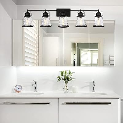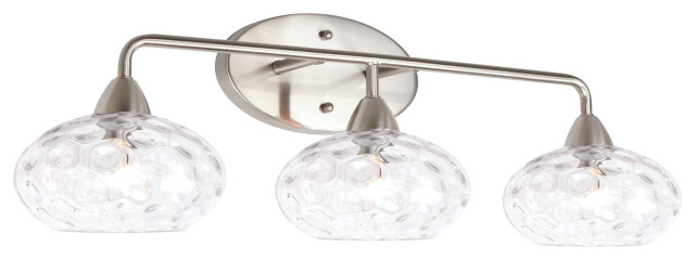 Versatile in design, this bright fixture can shine light up or down to your preference, illuminating any space you wish; The renslow 3 light vanity light features a black finish and clear hammered glass shades, delivering a soft, warm light to any bathroom or powder room. Additionally, details like the oval shaped shades and clean curved arm design, lend distinctive style to this triple sconce. Shop this collection (12) jasper 6.25 in. Shop bathroom vanity lights and find a variety of bathroom light fixtures to fit your style.